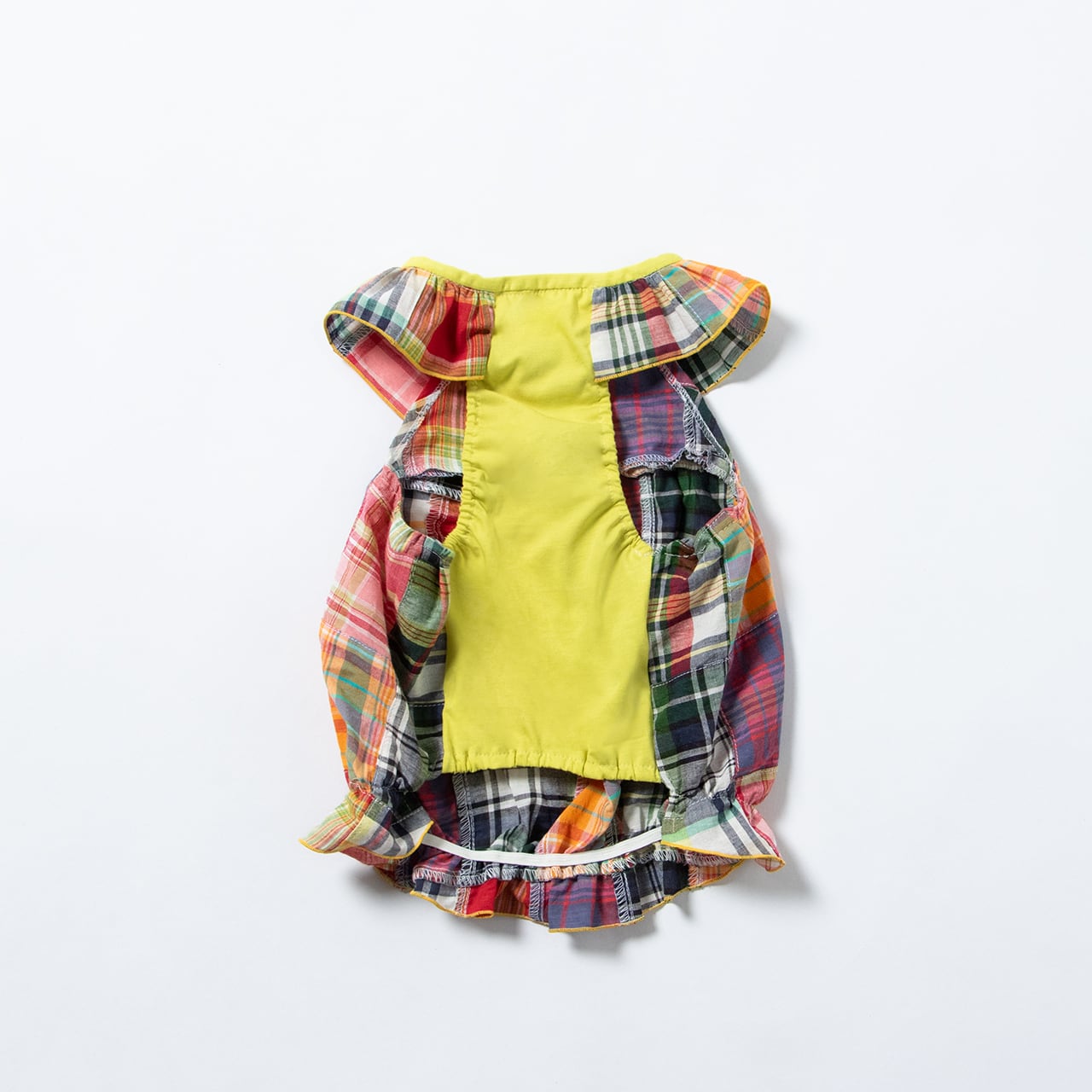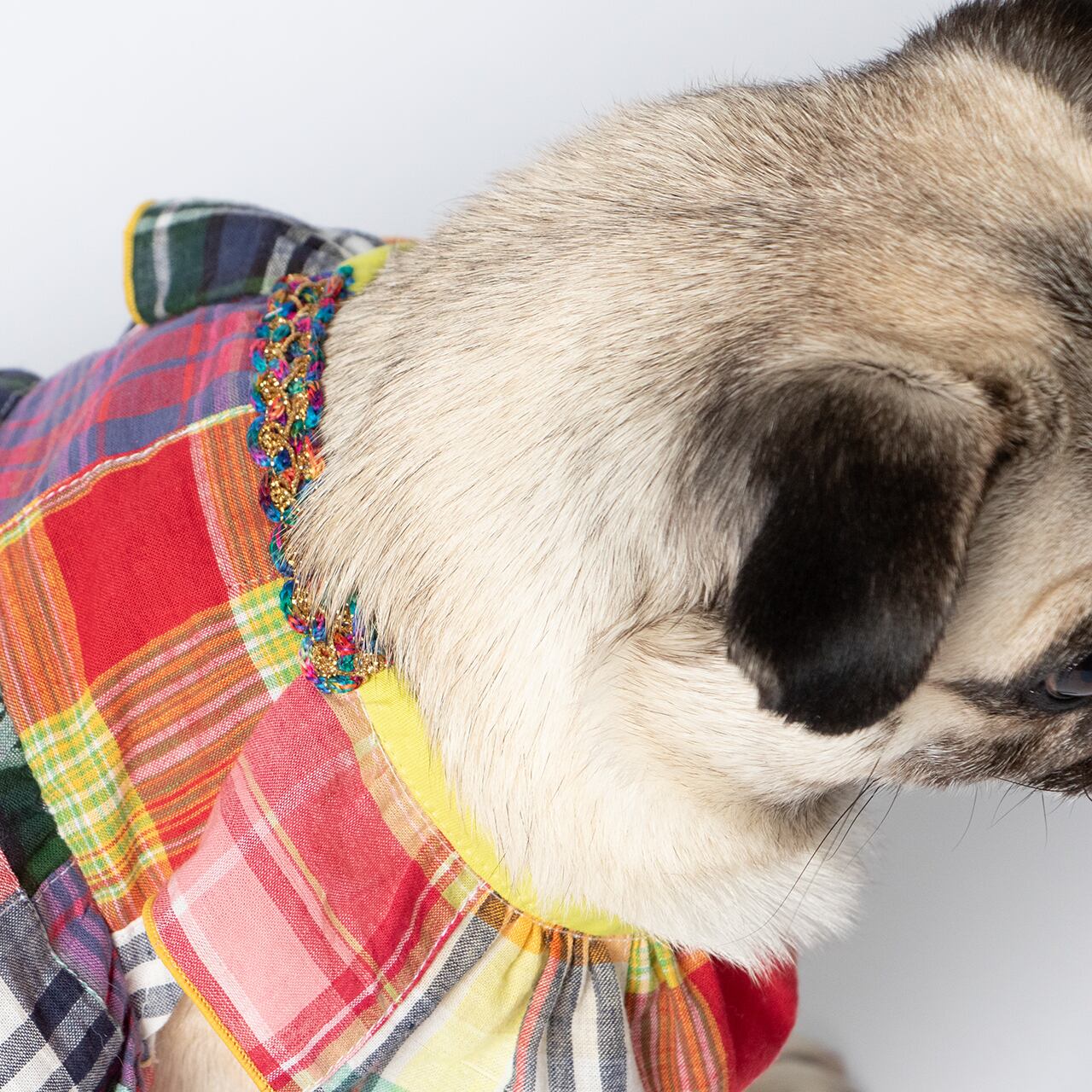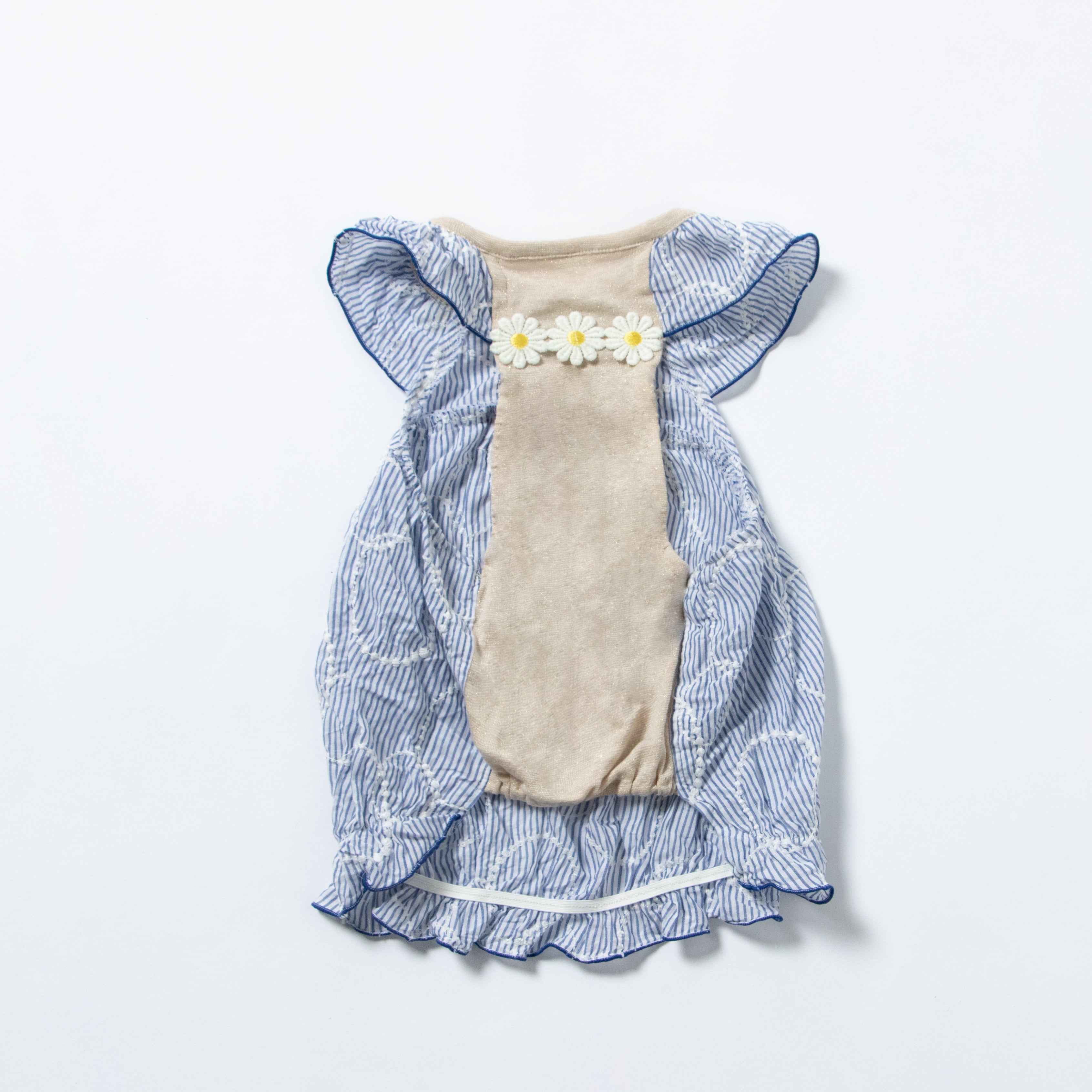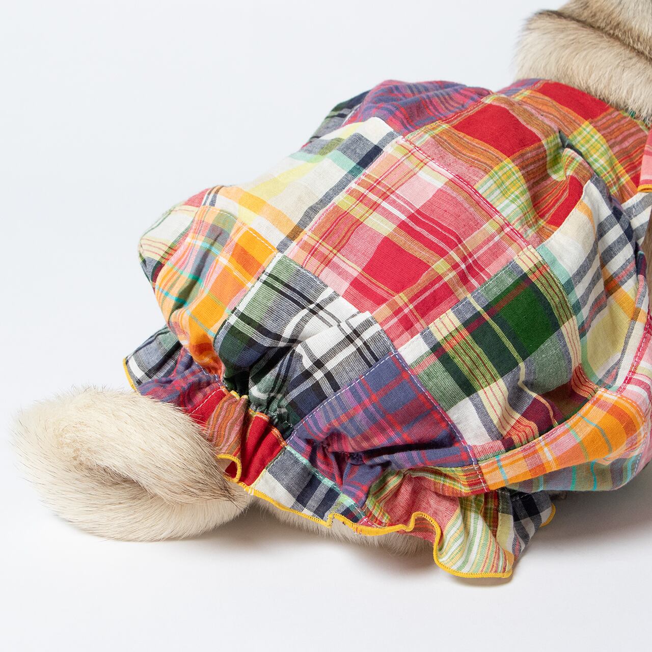 丸みのある立体シルエットが特徴の、軽やかなスモックタイプ。動きやすさと愛らしさを両立し、小型犬の体型にもなじみやすく仕立てています。