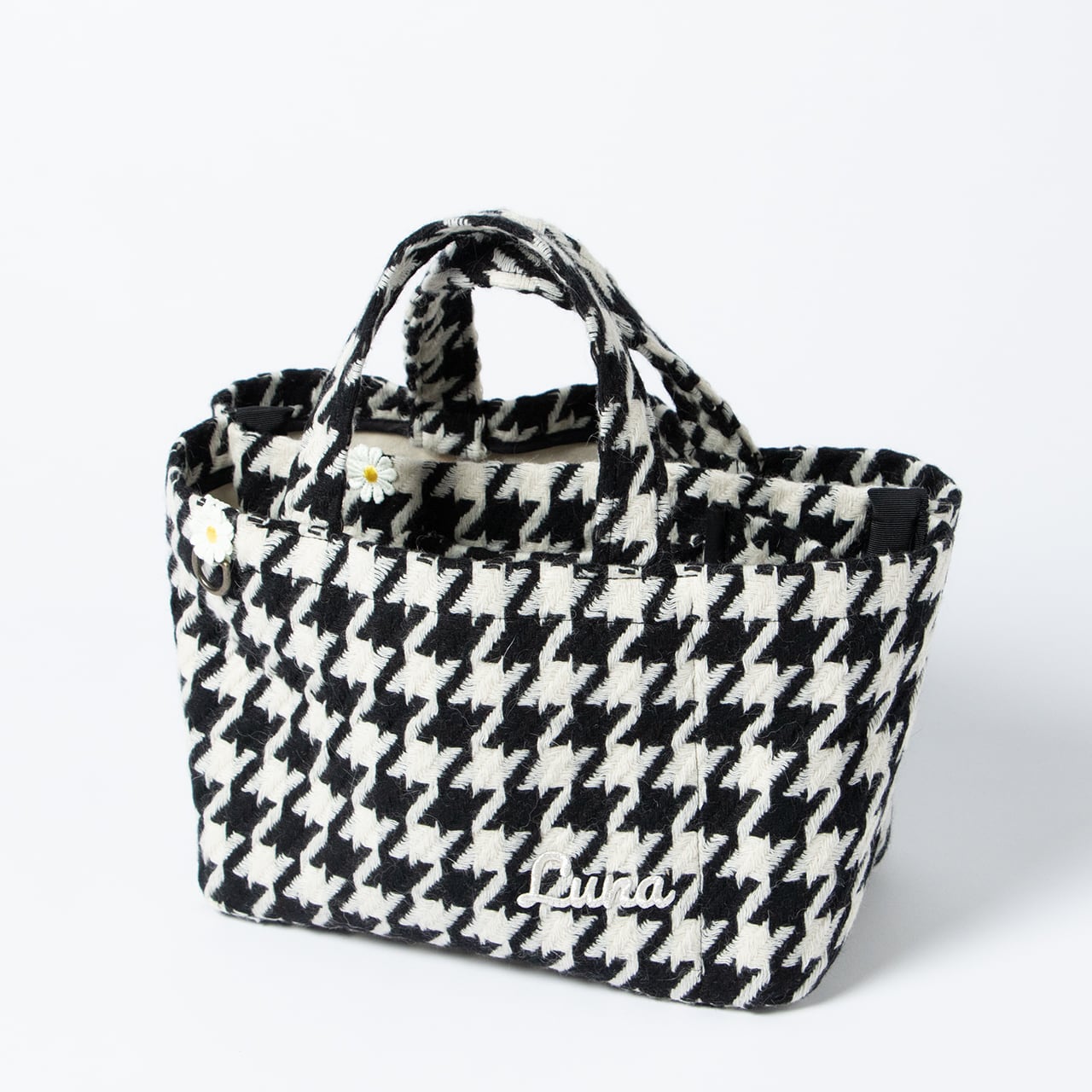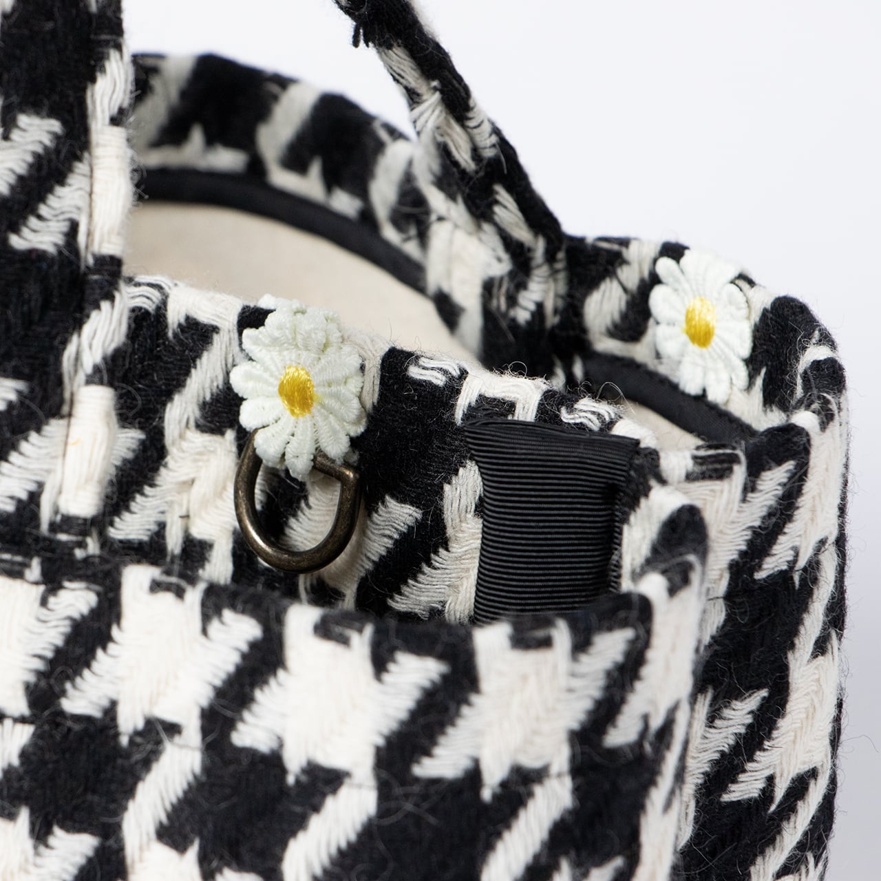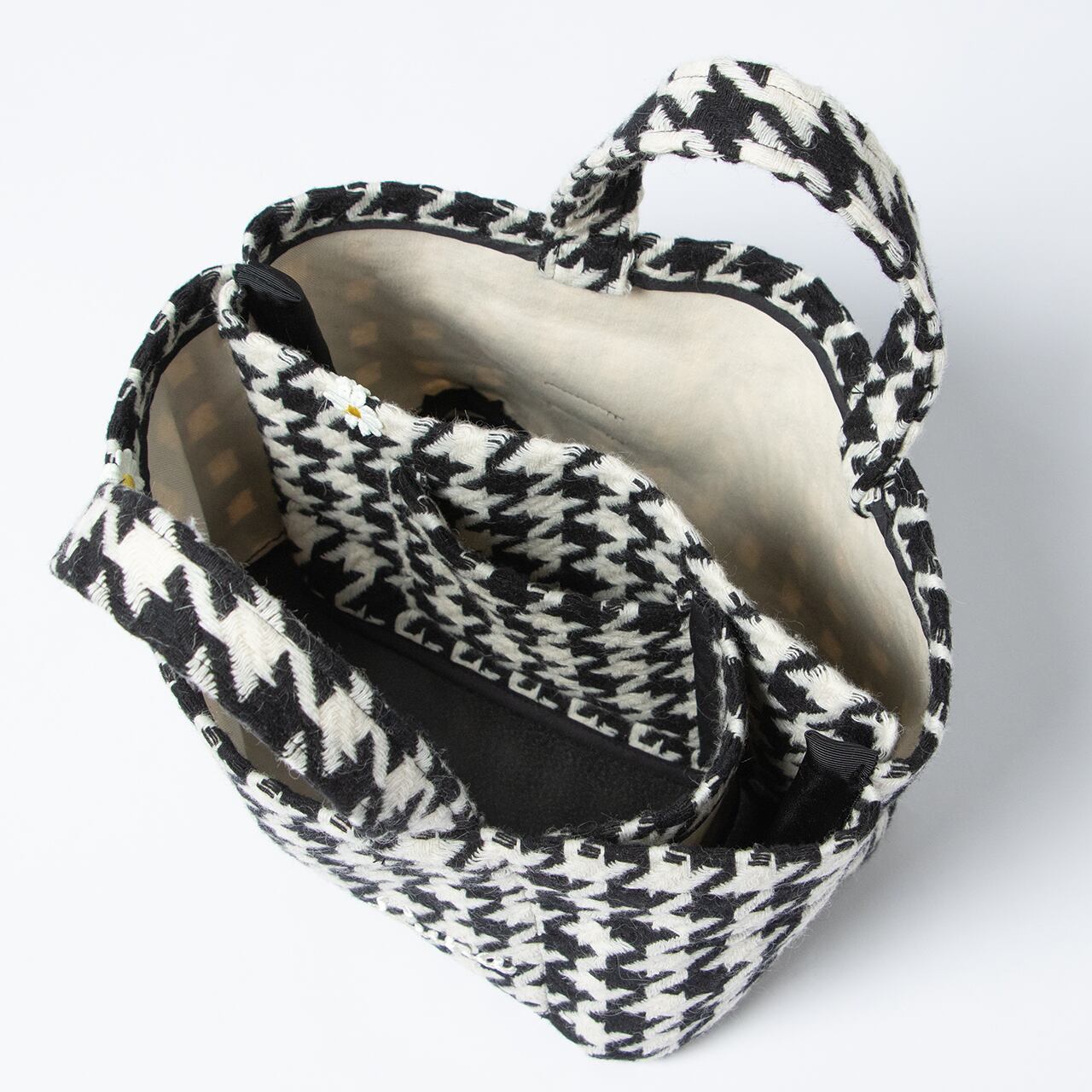 千鳥柄生地と帆布を重ねた、立体感のある仕立てのトート。